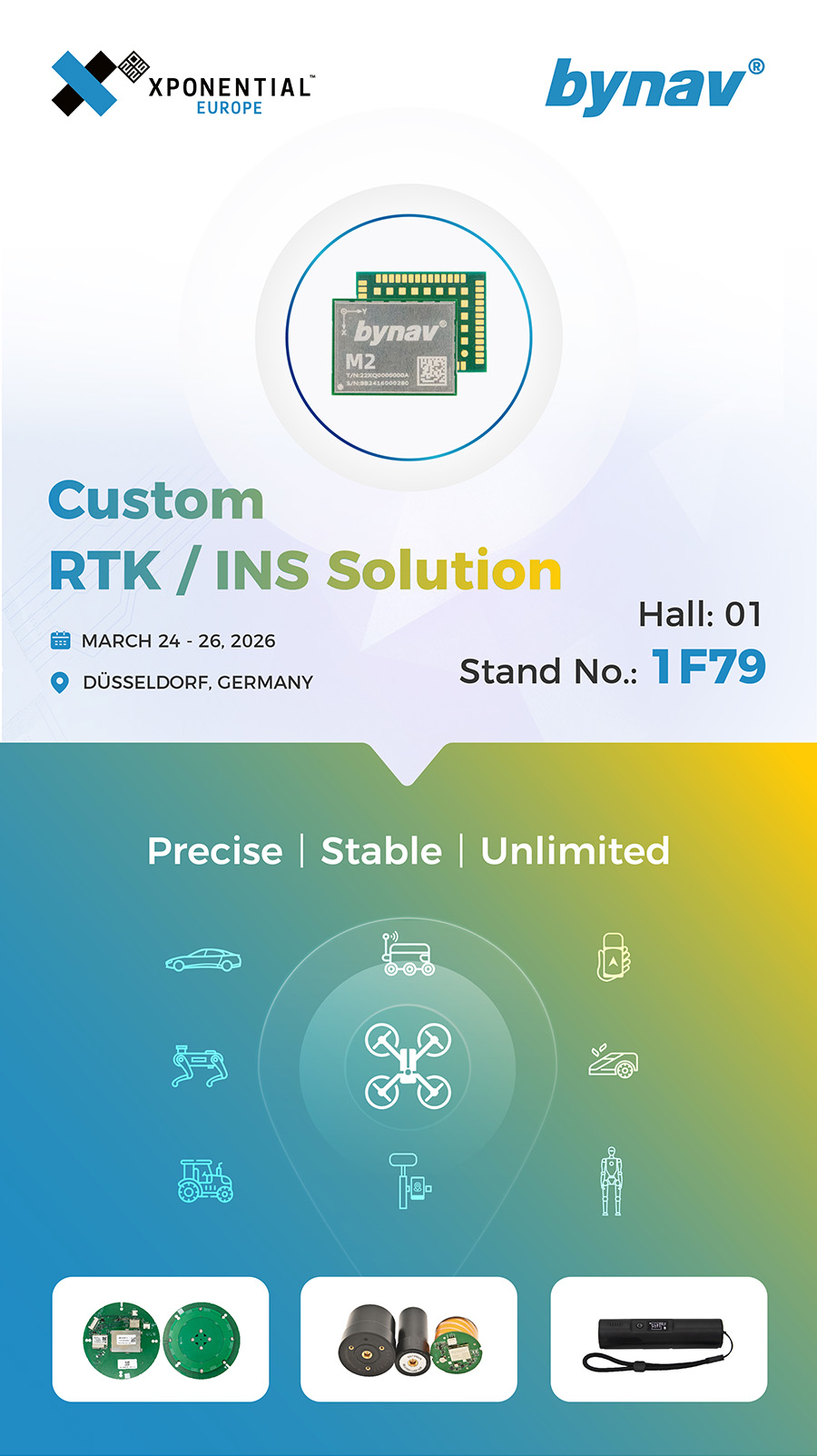 Come and visit Bynav to discover the new release of Multi-source Fusion CM-level Positioning Robot Control Unit.