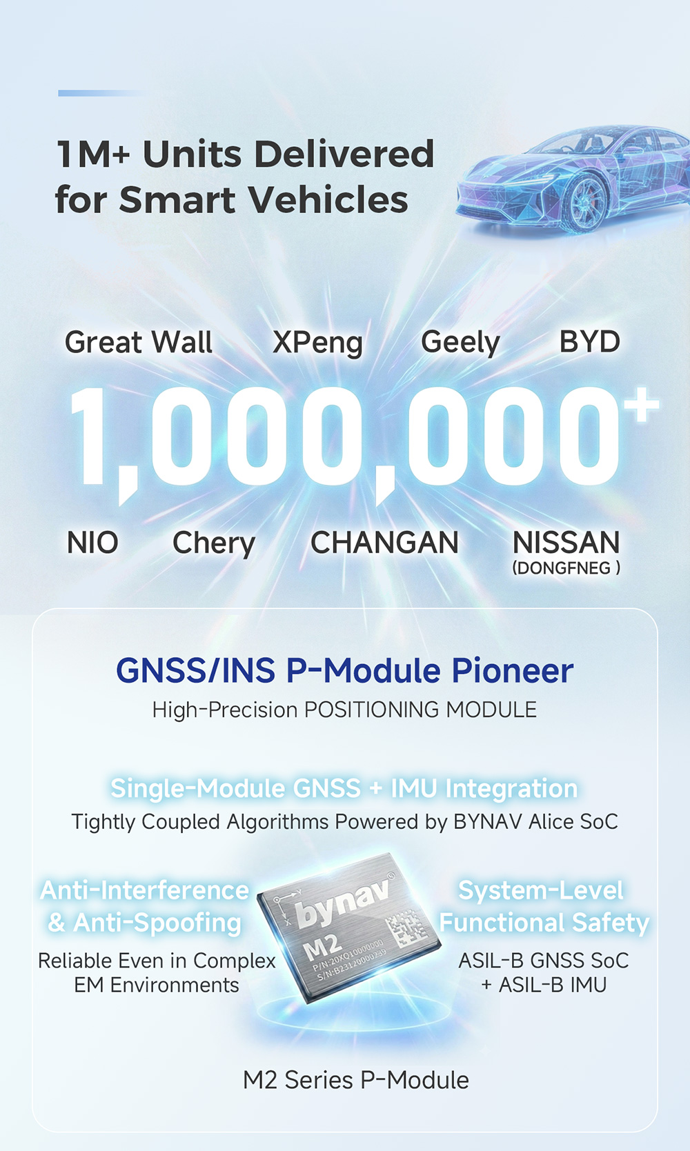 Bynav’s automotive-grade integrated navigation modules have successfully entered mass production, supporting vehicle solutions powered by Horizon Robotics and NVIDIA AI platforms.