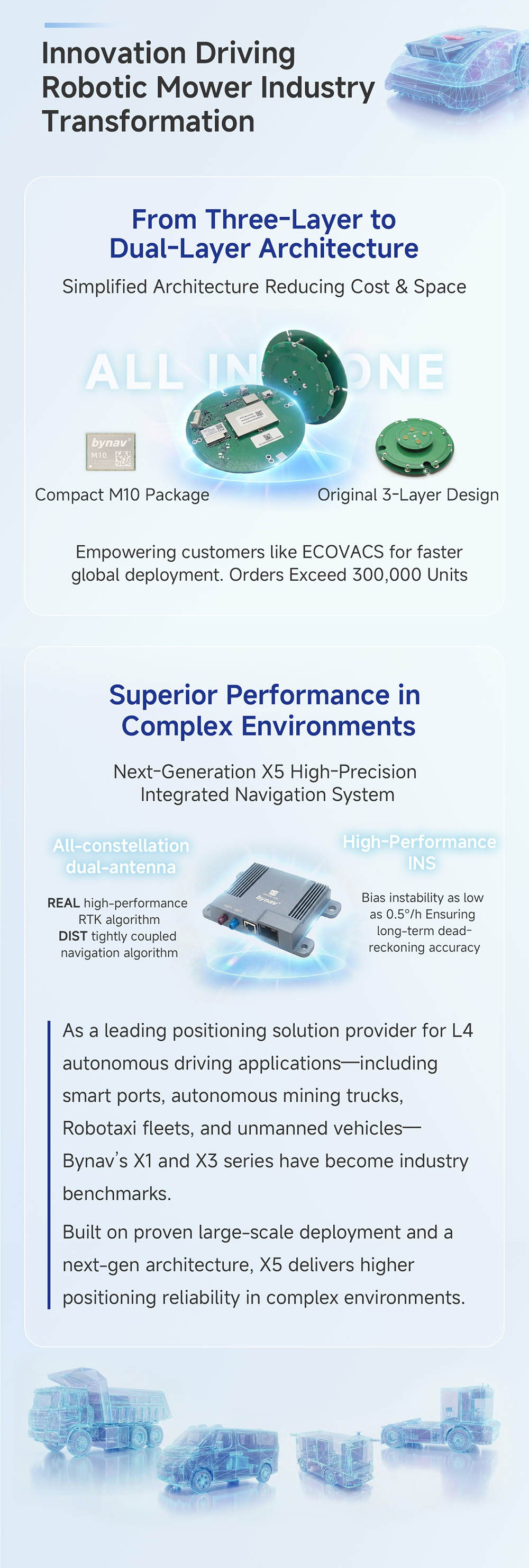 Bynav’s technology solutions are now widely used in intelligent robotics applications, including lawn mowing robots, driving industry upgrades through innovation.
