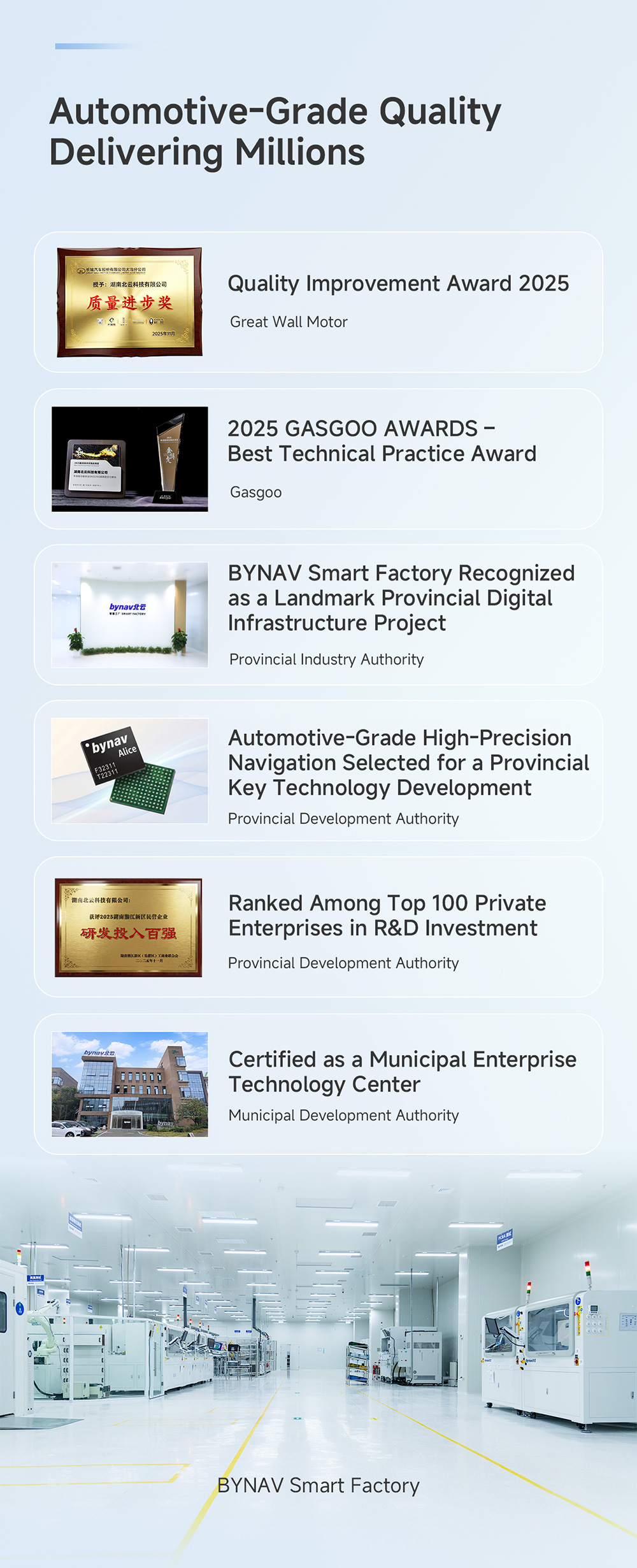 Bynav continues to ensure product reliability through automotive-grade quality systems, earning wide recognition across the industry.